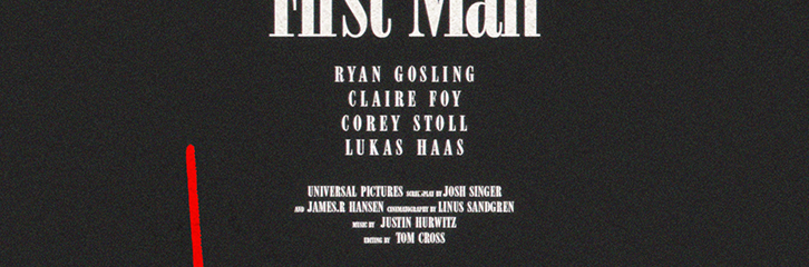 Les couleurs du poster First Man original et du premier visuel alternatif sont choisies pour leur simplicité d’utilisation et pour coller aux inspirations de base. Le rouge et le blanc n’ont pas de symbolique, si ce n’est de contraster avec le fond noir.