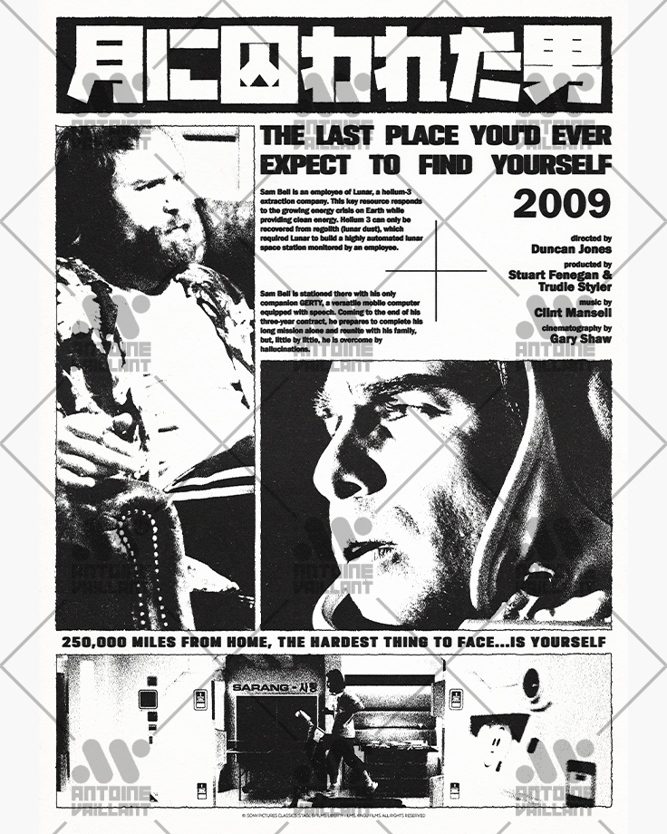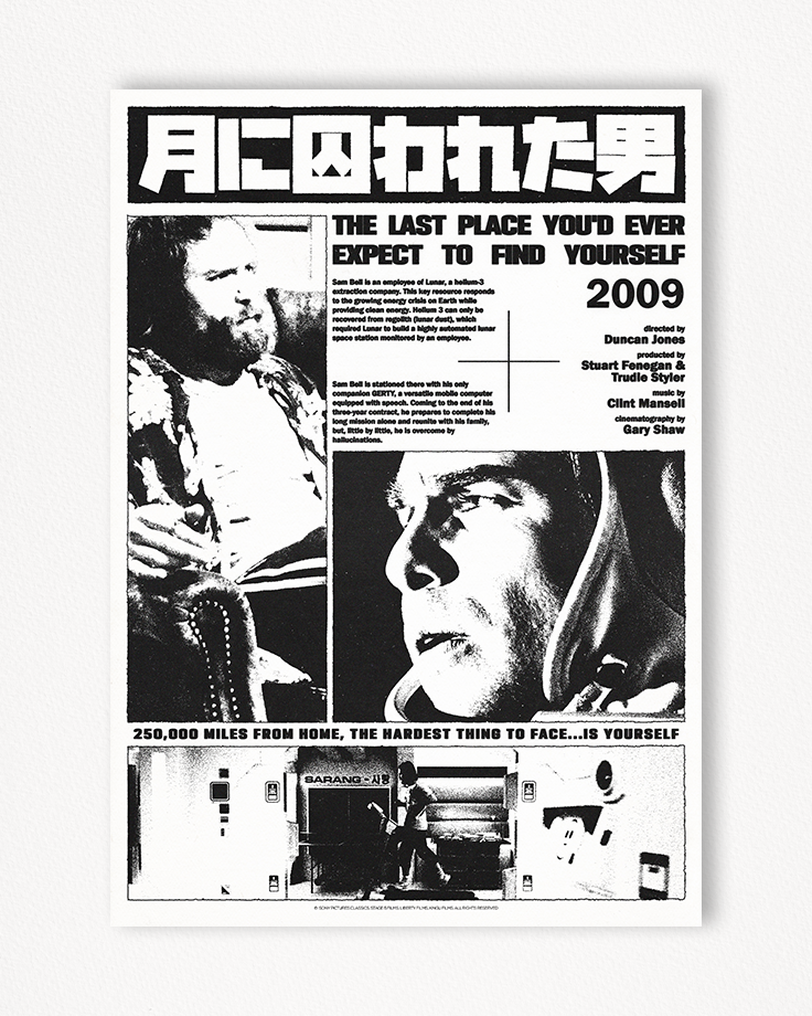 Concernant ce poster Moon, l’objectif était de représenter le film à travers un poster avec des influences visuelles et de composition rappelant le brutalisme.