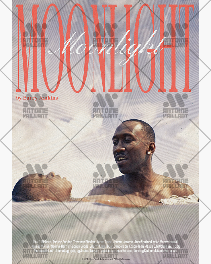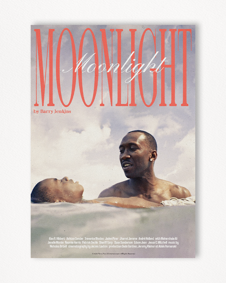 Étant l’une de mes premières compositions, ce poster Moonlight comporte peu d’éléments et laisse plutôt place au sujet : les personnages principaux.